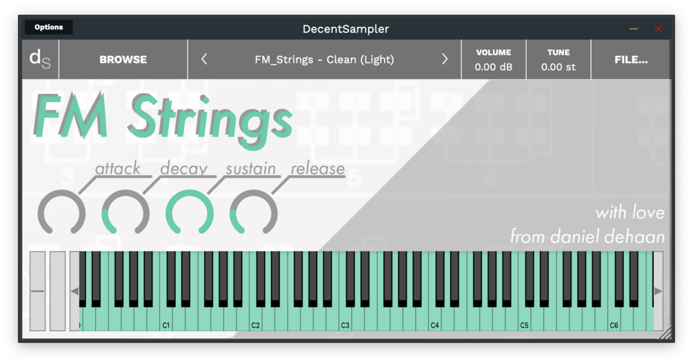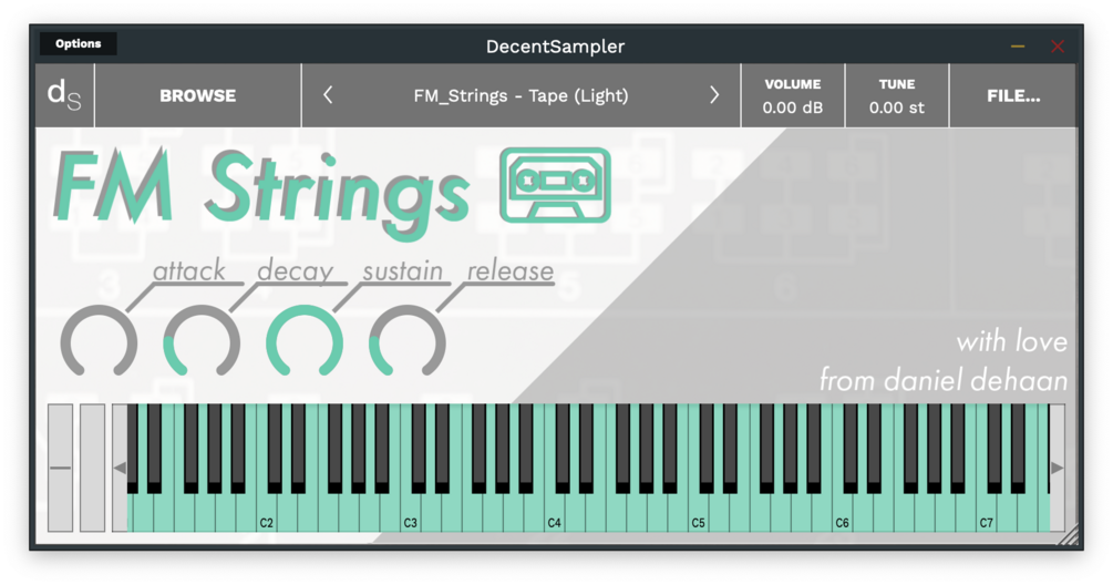 Created for the free Decent Sampler player, this instrument was sampled from a classic Yamaha DX7 and comes in two flavors: a brighter and completely unprocessed "clean" sound which was recorded directly from the original instrument, and a "tape" version which is warmed-up, saturated, and embedded with the wonderful wow and flutter of an old cassette tape.